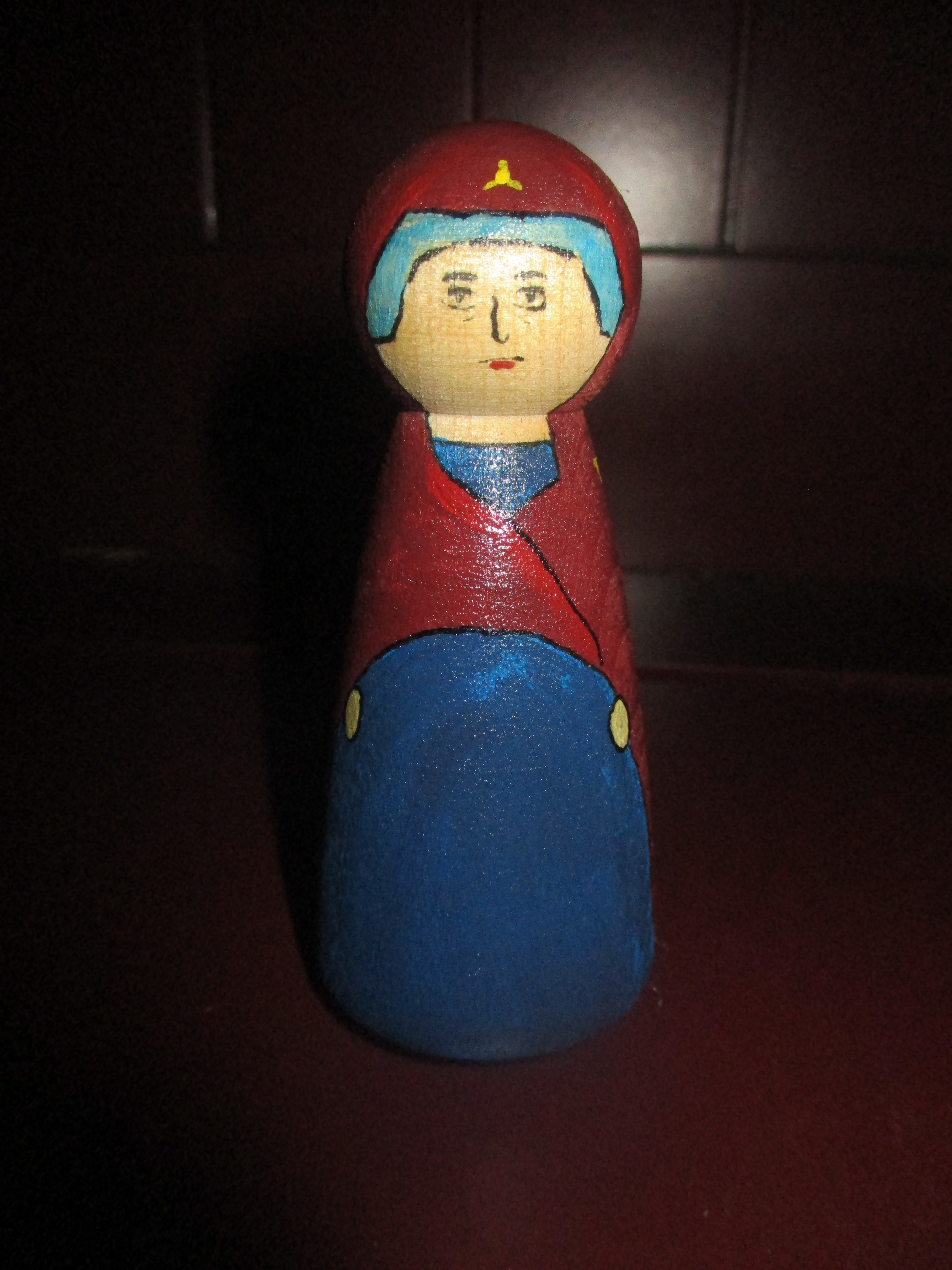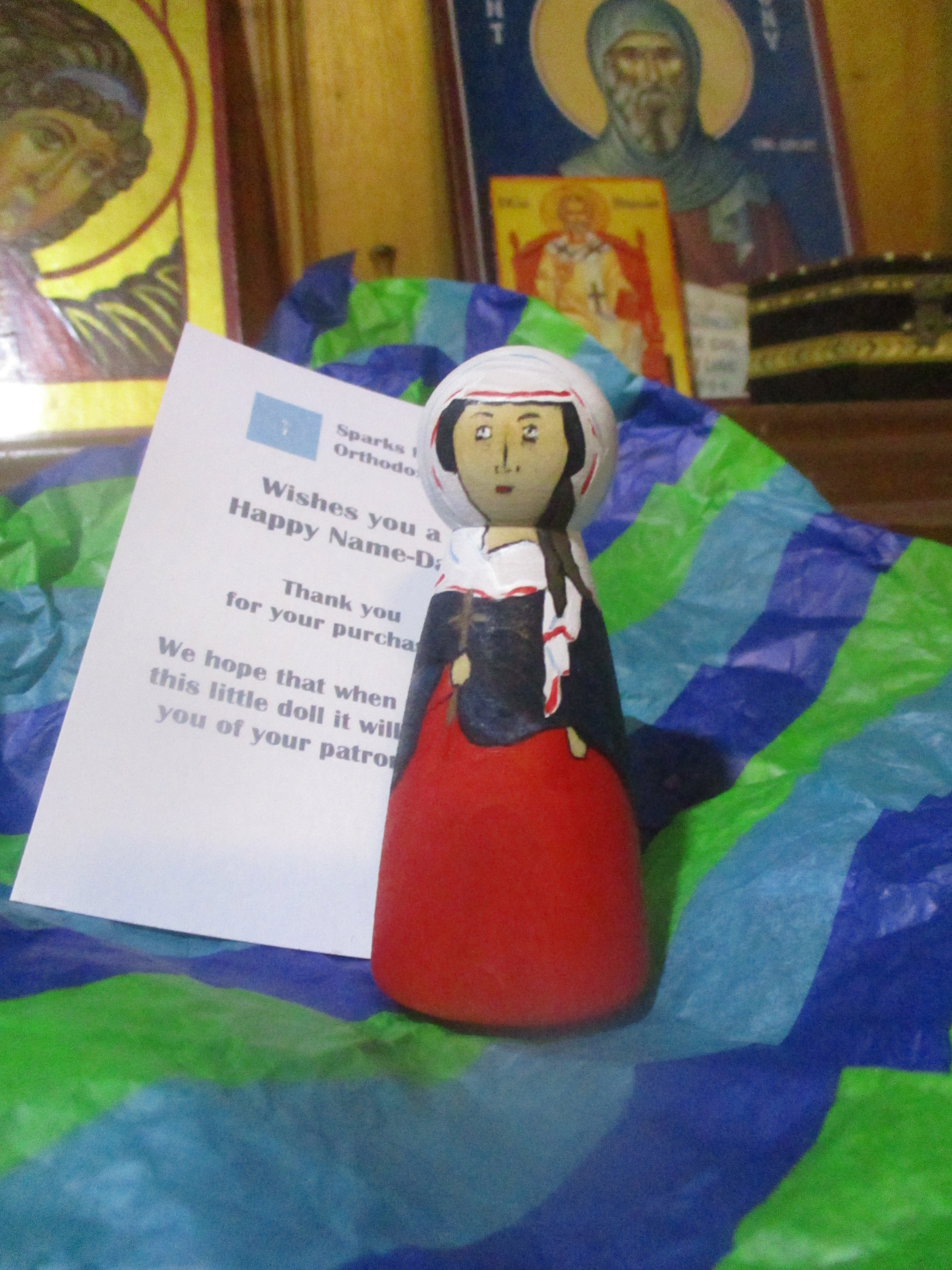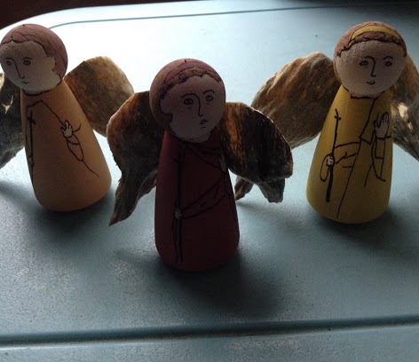 I enjoy painting pegdolls. If you would like one painted for your little Spark, please send me the name of the saint and we can discuss specifics. I charge $15 per pegdoll (3.5 inches tall) includes shipping. Orders of 3 or more, the price drops to $10 each still including shipping. Please order at least two weeks before you need them, to ensure they arrive on time. Payments go through PayPal.